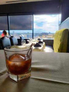 My reservation was for 6:30 pm on a Friday; When I arrived at the location at 6 pm, I began looking around for parking when the Valet service flagged me down to inform me that Valet was free for the restaurant and told me that the restaurant was located on the 9th floor of the office building where I arrived. Because I was thirty minutes early, I had expected to wait in the lobby when I approached the hostess station. However, they were able to sit me right away. As the hostess led me to my table, we passed by a nice full bar, grand piano, and some other patrons sitting at nice tables with leather chairs, beautiful lighting, and large windows overlooking the city. My seat was a corner table for two that was part of a long booth. I was able to sit facing the window on the opposite wall and look out over the scenery. After a few moments, my server stopped by my table and offered me a wine and a cocktail menu which also displayed an impressive collection of spirits. Accepting the cocktail menu, my server gave me a few minutes to decide what I wanted to have with my dinner; my server came back, presented the dinner menu, and took my drink order.