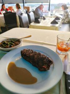 My entrée was a 16oz New York strip with Burgundy Mushrooms. The service timing could not have been better; my entrée was coming out as soon as I finished the appetizer, not leaving any time for waiting. I ordered my steak medium rare; it came lightly seasoned, allowing the cut’s full flavor to be enjoyed. When paired with the burgundy mushrooms, the steak presented sweet notes and deeper gamey notes than when by itself, and pairing it with the old-fashioned, it rounded out the meal and ended the evening, indeed a celebration.